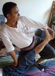 Phot jedeepaeng. Il est votre hôte, co-fondateur d'Ananta avec Axel en 2011, il a 40 ans. Il est bouddhiste. il occupe la fonction de professeur de massage thaî à Ananta, mais il s'occupe aussi de toute l'intendance. Il est notamment un excellent cuisinier et il est propriétaire du restaurant "Banana Leaf".Il parle thaï et anglais. |